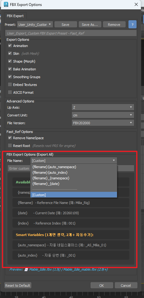 예시 2) Fast-Ref + FBX Export 사용하는 경우
