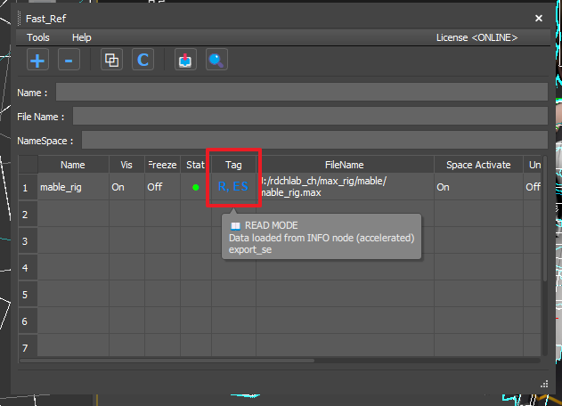 Fast-Ref 메인 UI → Tools 메뉴 → Rig Data Manager